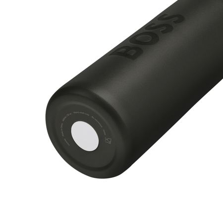 The BOSS bottle features a smooth, matte surface embossed with an oversized BOSS logo, delivering a minimal and unisex yet luxurious expression through a clean, modern silhouette in black with sleek gunmetal trims. The design is completed by a plated Double B logo on the lid in matching metal tones, while carefully coordinated details and a tone-on-tone silicone strap ensure a cohesive and streamlined look. With a 600 ml capacity, the bottle is designed for everyday use and easy portability, carrying both hot and cold drinks throughout the day. The bottle is double-walled, with SS304 inner and SS201 outer material.