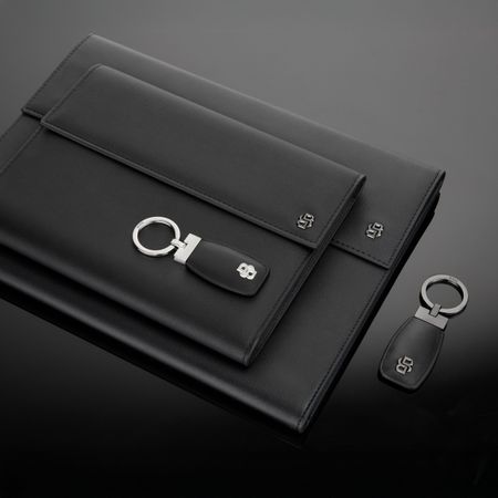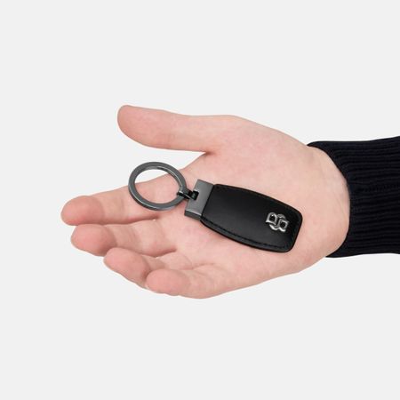 Crafted from carefully chosen smooth black genuine leather, this BOSS double B leather keyring is a classical and luxurious accessory. The keyring features a mini version of the iconic double B plate, signed with the BOSS logo embossed on the back and the BOSS logo engraved on the ring. The shiny gunmetal trims complement the sleek leather, making it a versatile accessory that pairs effortlessly across the collection.