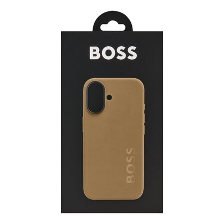 A sleek and minimal case in the iconic BOSS camel texture, featuring an oversized embossed BOSS logo for a refined and elegant touch. Crafted from silicone, TPU, and polycarbonate, it ensures durability while supporting magnetic fast charging. Entirely monochromatic and discreetly signed inside with the BOSS logo, it is the perfect accessory to add a touch of understated elegance to the iPhone 16.