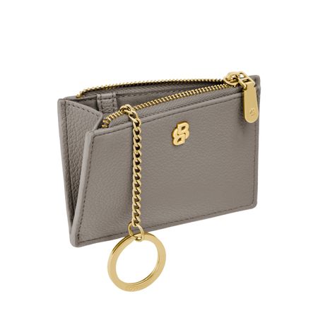 This refined accessory is designed as a hybrid between a card holder and a keyring, allowing it to be used seamlessly as both. Crafted in grained matte PU, it is highlighted by a Double B signature plate on the front and balanced by a BOSS logo embossed on the back. Newly developed light goldâ??plated zippers with a Double B detail bring a soft, delicate finish while maintaining a clean, minimal look. The construction features three card slots on the back and a roomy, gusseted main compartment secured with a zip, which includes an integrated BOSS keyring attached to a jewelry-like chain. Finished entirely with light gold trims, the piece is offered in a soft and vibrant color palette of black, burgundy, taupe, nude, and lilac.