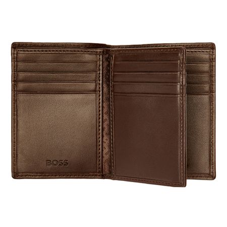 The Boss Classic Smooth line is Boss ultimate minimalist, timeless small leather goods offering, characterized by carefully chosen leathers and understated aesthetics. All pieces are masterfully crafted and signed with crisp chrome Brand plates, along with monogram linings. The designs are available in black and brown. This card holder with flap includes : 2 currency compartments 16 card slots 5 side compartments