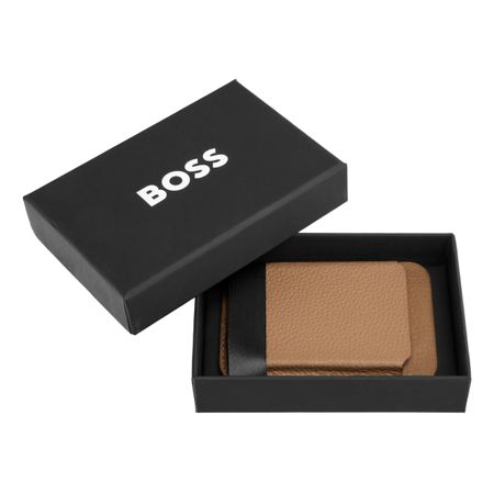 Our magnetic card holder is crafted from top-grain genuine leather. It is equipped with a MagSafe system that allows for adhesion on the back of any phone equipped with the technology. This camel version features a beautiful matte texture with pebbled grain and is subtly embossed with the BOSS logo. The finishing touch is a monogrammed lining that adds another subtle element of branding. Despite its minimal and compact design, it can still carry up to 5 cards.