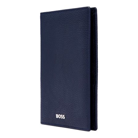 Boss Classic Grained line is characterized by carefully chosen top-grain leathers and minimalist designs. All pieces are skilfully assembled and beautifully finished with crisp chrome signature plates and monogram linings. The designs are available in black, navy and camel. This passeport holder features : 1 currency compartment 4 card slots 1 passport book pocket