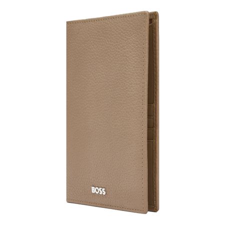 Boss Classic Grained line is characterized by carefully chosen top-grain leathers and minimalist designs. All pieces are skilfully assembled and beautifully finished with crisp chrome signature plates and monogram linings. The designs are available in black, navy and camel. This passeport holder features : 1 currency compartment 4 card slots 1 passport book pocket