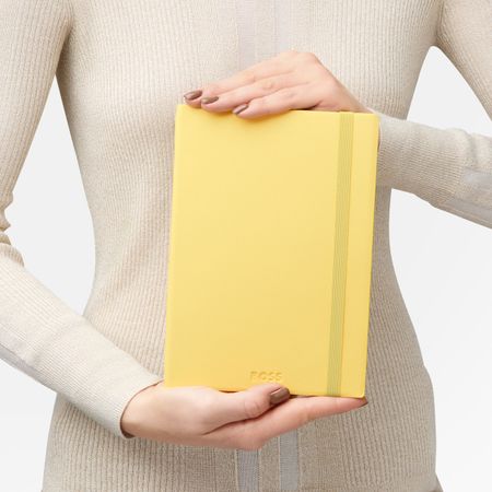 Introducing the Pastel Classic Series, featuring an unexpected pastel palette that brings a touch of soft color to the BOSS notebook collection. This light yellow A5 notebook is embossed with the BOSS logo for a refined finish. Part of the Elemental series, it includes 192 lined pages of 80gsm paper, a vertical elastic closure, and a practical page marker, blending style and functionality effortlessly.