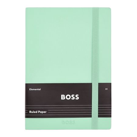 Introducing the Pastel Classic Series, featuring an unexpected pastel palette that brings a touch of soft color to the BOSS notebook collection. This light green A5 notebook is embossed with the BOSS logo for a refined finish. Part of the Elemental series, it includes 192 lined pages of 80gsm paper, a vertical elastic closure, and a practical page marker, blending style and functionality effortlessly.