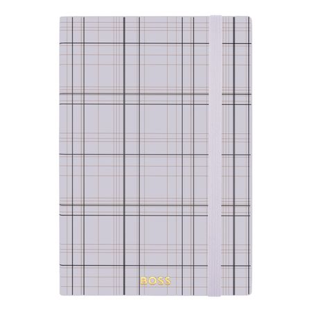 This Checkered notebook is crafted in smooth PU and features a bold checkered print inspired by the BOSS ready-to-wear line, creating a strong and graphic identity. The design is finished with a BOSS logo embossed on the front and highlighted with gold foil, while a vertical elastic closure and matching page marker ensure a cohesive look. Presented in an A5 format with lined paper, it contains 192 pages and combines everyday functionality with a distinctive visual signature.