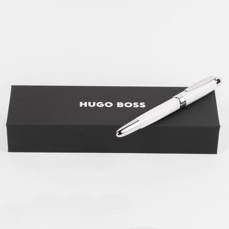 Elevate your writing experience with the HUGO BOSS Rollerball Pen Icon White. This elegantly designed pen features a striking white and black color palette, crafted from premium brass with a sleek lacquer finish. Weighing just 46g, its comfortable grip allows for effortless writing, while the blue ink cartridge ensures smooth, consistent lines. Perfect for both men and women, this refined pen is an ideal accessory for anyone who values sophistication and style in their everyday tools. Make a statement with every strokeâ??choose the HUGO BOSS Rollerball Pen Icon White today!