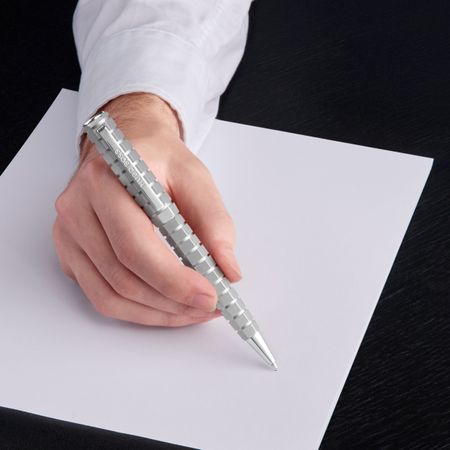 This exclusive writing piece is edited in limited quantity, with each piece numbered. An exceptional item, it is delivered in special, limited-edition packaging, with its guarantee card protected in a luxurious leather card holder. Based on a striking hexagonal form, this penâ?™s angularity is accentuated by a series of sculptural rectangular streaks. Blurring the line between sculpture and architecture, this exceptional writing instrument is fully plated in minimalist matte chrome, allowing the unique design to take center stage