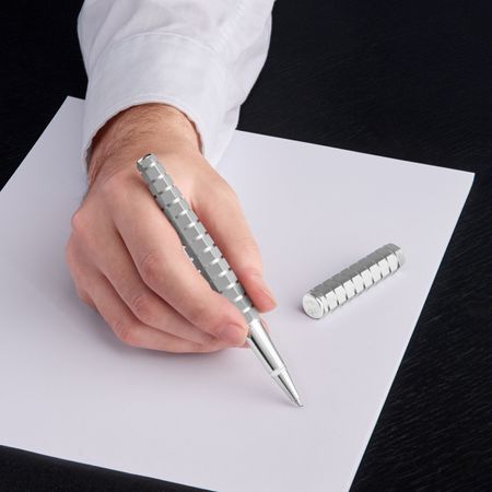 This exclusive writing piece is edited in limited quantity, with each piece numbered. An exceptional item, it is delivered in special, limited-edition packaging, with its guarantee card protected in a luxurious leather card holder. Based on a striking hexagonal form, this penâ?™s angularity is accentuated by a series of sculptural rectangular streaks. Blurring the line between sculpture and architecture, this exceptional writing instrument is fully plated in minimalist matte chrome, allowing the unique design to take center stage