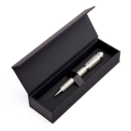 Built on a modernized, slightly oversized edition of a timeless silhouette, this version of the Arc pen will speak to true writing lovers. It mixes an ultra-modern, architecturally inspired engraved pattern, covered in luxurious lacquer for a smooth handfeel, with timeless crisp chrome plating. It is a classic and a statement all at once. This line is available in silver or in gun, both finished with luminous chrome trims.