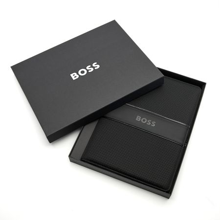 Introducing the "Arche" folders, a fusion of contemporary design and functionality. Available exclusively in the sleek All Black color, these folders showcase innovative and unexpected mesh material, seamlessly paired with a rubber-finished PU for an engaging and active tactile experience. The oversized Boss embossed logo adds a bold statement, while meticulous detailing, such as the matte black zippers, reflects our commitment to elegance. "Arche" folders are available in two sizes : A4 and A5.