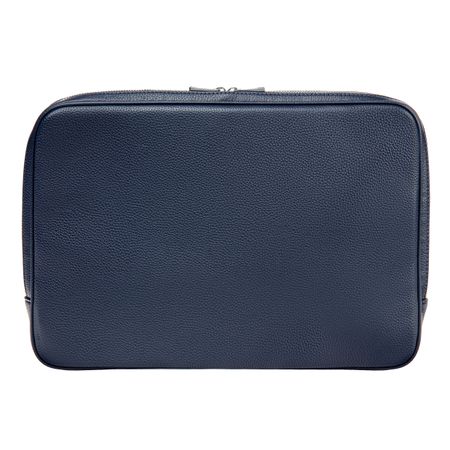 The Grained Classic computer sleeve is crafted in a soft leather-like grained texture, accented with a crisp chrome signature plate and matching chrome zippers. Inside, a tone-on-tone monogrammed lining highlights the refined finish. Designed with multiple compartments, it offers exhaustive organization for everything from pens and documents to cables, cards, or a phone. Available in black, navy, khaki, and taupe.