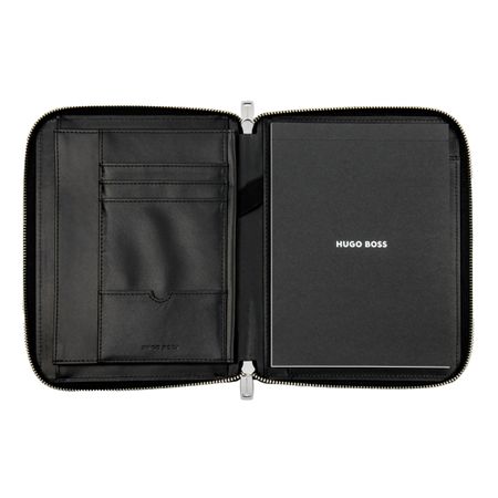 The 'Pure Iconic' folder embodies elegance and timelessness, designed to complement its eponymous pen as well as various writing pieces across our collection. Its subtly grained, matte textures and delicate chrome trims provide just the right amount of luxury feel. The folder is adorned with a delicate HUGO BOSS letterplate, and its zipper pullers are also engraved with the brand logo. Available in two colorsâ??black or camelâ??and two sizesâ??A4 and A5.