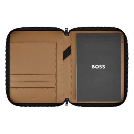 The Varsity folder brings a colorful, graphical twist to a varsity-inspired aesthetic, expressed through an impactful palette of black, camel, burgundy, dark green, and navy. Each version features an oversized, contrastive Double B logo patch highlighted by fresh white outlines, delivering a bold, collegiate touch. Black trims add modernity to the design, while the new BOSS zipper pullers provide a refined and contemporary finish.