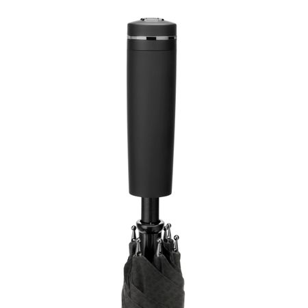 The Double B City umbrella in black with gunmetal accents is a true statement of urban elegance. Featuring an intricately designed three-dimensional metallic rendition of the BOSS Double B logo at the tip of the handle, this umbrella is a symbol of refined style. The elegant, monochromatic monogrammed canopy adds sophistication, while the carefully crafted design elevates this accessory, making it the perfect complement to the modern urban lifestyle. With attention to every detail, this umbrella combines practicality with an understated luxury, ideal for those who appreciate both form and function.