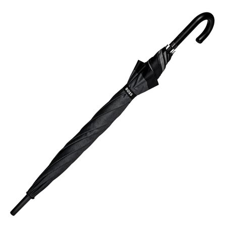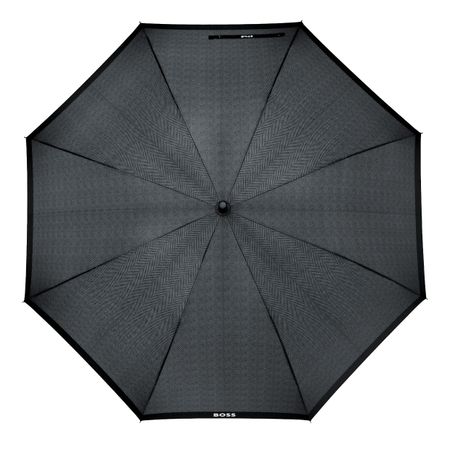 The Chevron umbrella introduces a fresh interpretation of the herringbone motif rooted in BOSS history, subtly echoing the brandâ?™s suiting tradition while keeping the design minimal and masculine with a modern twist. This elegant city size is perfect for everyday use, it features a handle luxuriously wrapped in a leatherlike material with BOSS embossing, while all trims in deep gun add to its understated, elevated feel.
