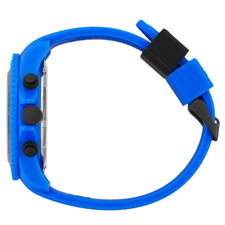 Opt for the sporty and masculine look of the ICE chrono - Neon blue watch! Imposing and sturdy, this neon blue watch will add a special style to your everyday wear. Thanks to its deep black dial, its chronometer and its textured silicone strap, this watch will give your wrist a virile and assertive touch. What makes it special? It is the only chrono with a case made from bioplastic, a bio-sourced material! Ice-Watch combines style and technological innovation to give life to a colourful and more eco-responsible collection.