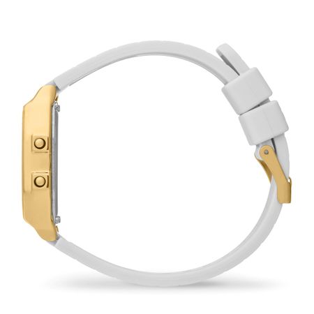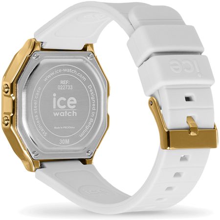 Introducing the ICE Digit Retro-Metal Gold Mirror Watch in Whiteâ??where timeless elegance meets modern style. Crafted for women who appreciate sophistication, this stunning timepiece features a chic white dial and a durable stainless steel case paired with a sleek silicone strap. Weighing just 28 grams and boasting 3 ATM water resistance, itâ?™s perfect for everyday wear or special occasions. Elevate your accessory game with this exquisite blend of retro charm and contemporary design. Make a statement and showcase your unique style with ICE-Watch today!